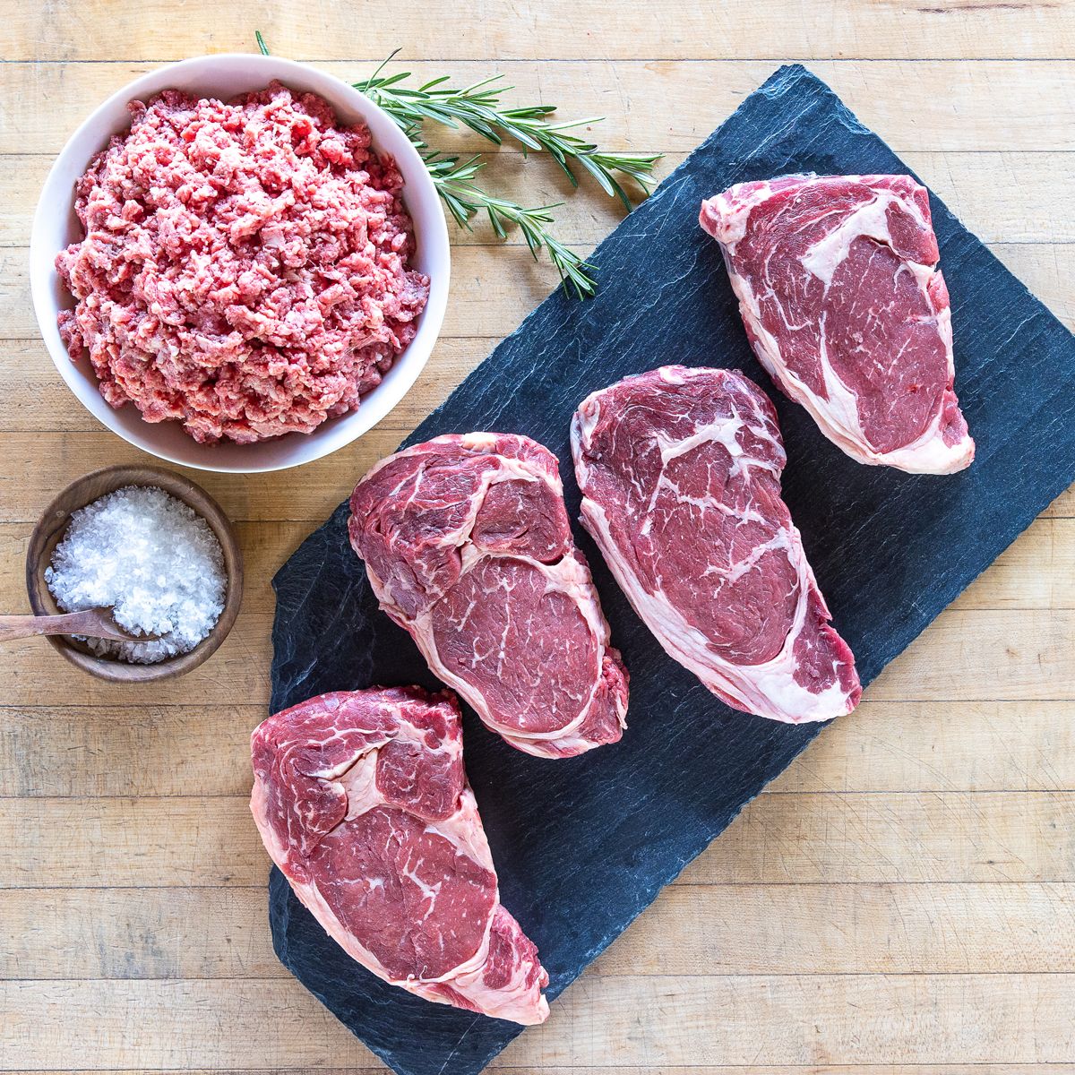 Enjoy these flavorful and delicious Ribeye steaks, a great selection for any special occasion. This premiere Biltmore® Grown Ribeye Package is premium quality with 14-day, dry aged flavor. This farm to table product is pasture based angus beef and has no hormones added.