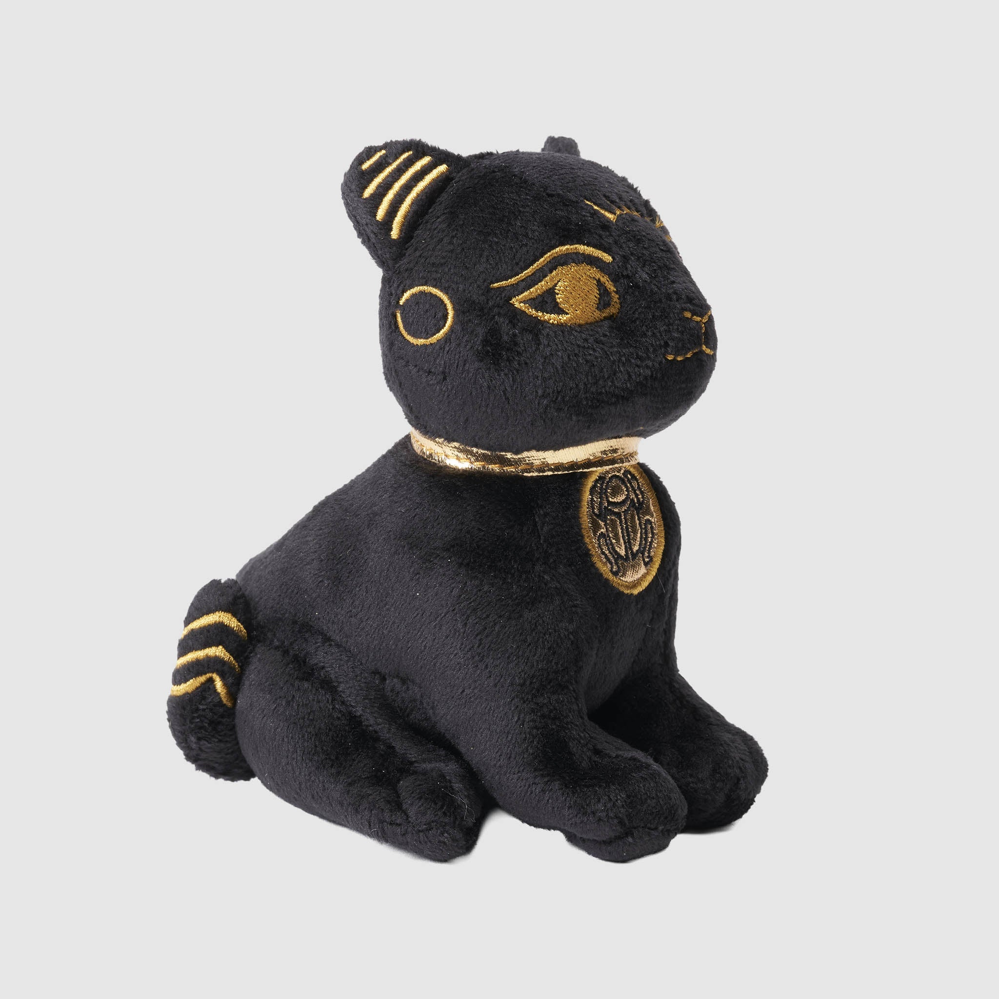 Our smaller-size snuggly soft plush Bastet cat is the perfect Biltmore Tutankhamun souvenir for kids… and kids at heart! Jet black with a shiny golden ribbon collar, Bastet has golden stitched detailing that includes a scarab amulet medallion. Your new favorite stuffed animal was inspired by the Egyptian goddess Bastet, known for her association with cats, protection, and good fortune.